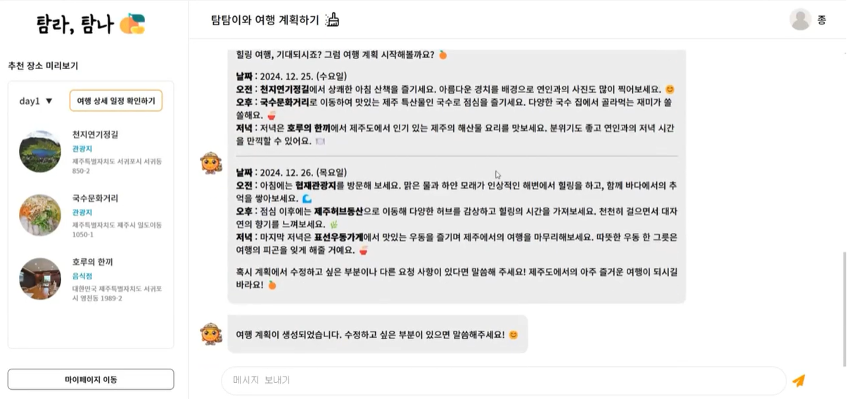 - ๐ LLM ๊ธฐ๋ฐ ์ ์ฃผ๋ ์ฌํ ๊ณํ ์ถ์ฒ ์๋น์ค โํ๋ผ, ํ๋โ