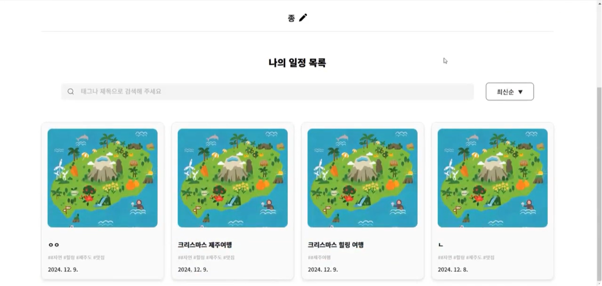 - ์นด๋๋ฅผ ํด๋ฆญํ๋ฉด ํด๋น ์ผ์ ์ ์์ธ ์ผ์ ํ์ด์ง๋ก ์ด๋ํ์ฌ ์ธ๋ถ ์ ๋ณด ํ์ธ ๊ฐ๋ฅ