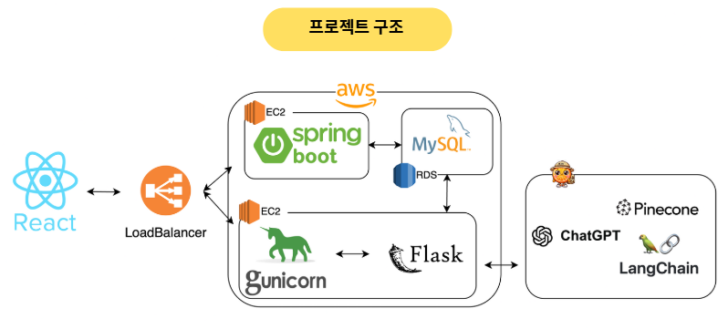 - ๋ฐ์ดํฐ๋ฒ ์ด์ค: MySQL๊ณผ Pinecone DB๋ฅผ ์ฌ์ฉํ์ฌ ์ฌ์ฉ์ ๋ฐ์ดํฐ์ ์ฅ์ ์ ๋ณด๋ฅผ ์ฒด๊ณ์ ์ผ๋ก ๊ด๋ฆฌ.