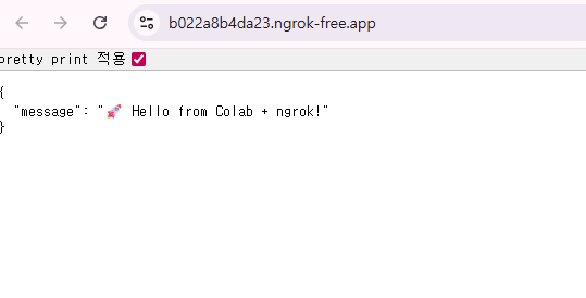 하지만 Colab은 클라우드 환경이기 때문에 외부에서 접근이 불가능한데, 이때 ngrok이라는 툴을 사용하면 로컬에서 실행 중인 서버를 외부에서 접근 가능한 URL로 노출시킬 수 있다.