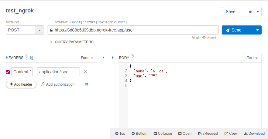 위의 코드를 참고해 ngrok 주소를 넣고, 실행하면 아래와 같이 잘 작동하는 것을 확인할 수 있다.
