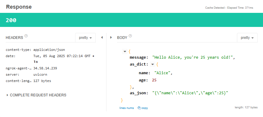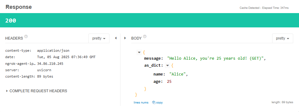 "message": f"Hello {user.name}, you're {user.age} years old! (POST)",