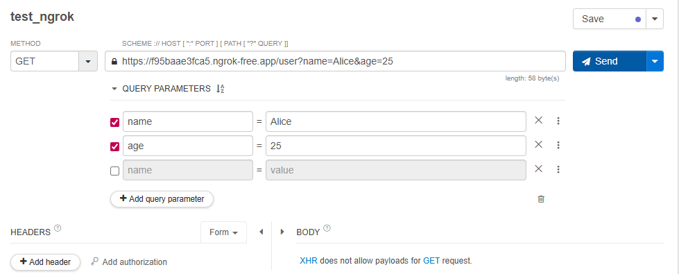 GET 방식을 사용하기 위해 url에 파라미터 전달 /user?name=Alice&age=25