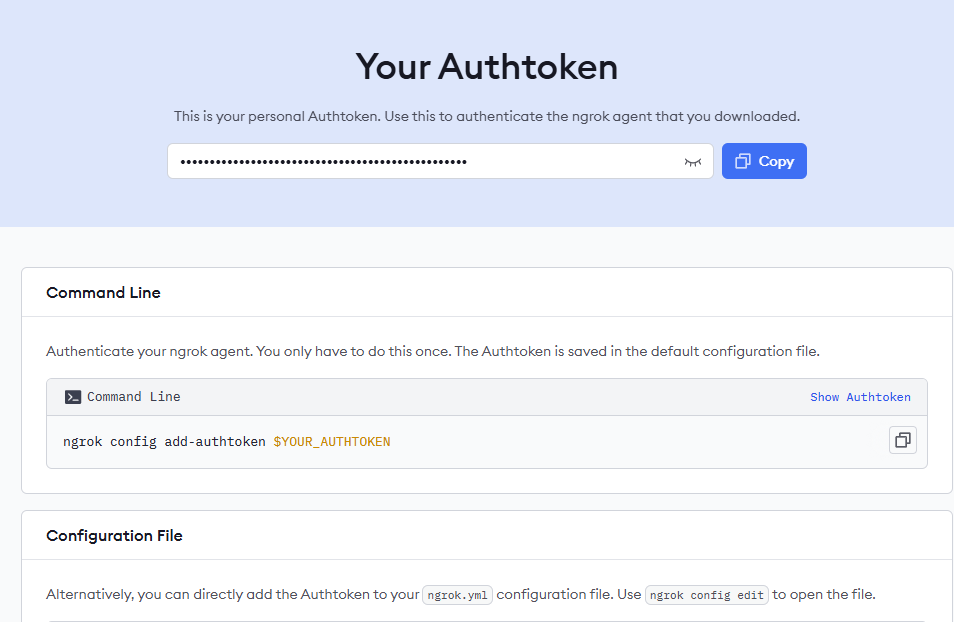 !ngrok config add-authtoken <your_token> ## ngrok 인증 설정